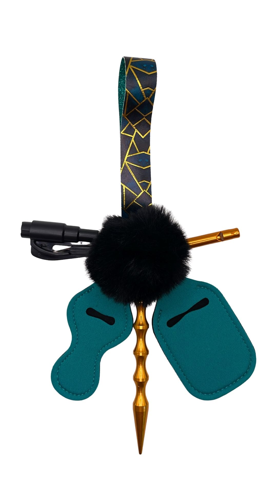 This handmade wristlet is a versatile accessory that offers both style and safety. It features a pompom, kubaton, and various holders including a chapstick holder, hand sanitizer, and a seat belt cutter/window breaker. The additional emergency whistle adds an extra layer of security. Stay prepared and stylish with this functional accessory.