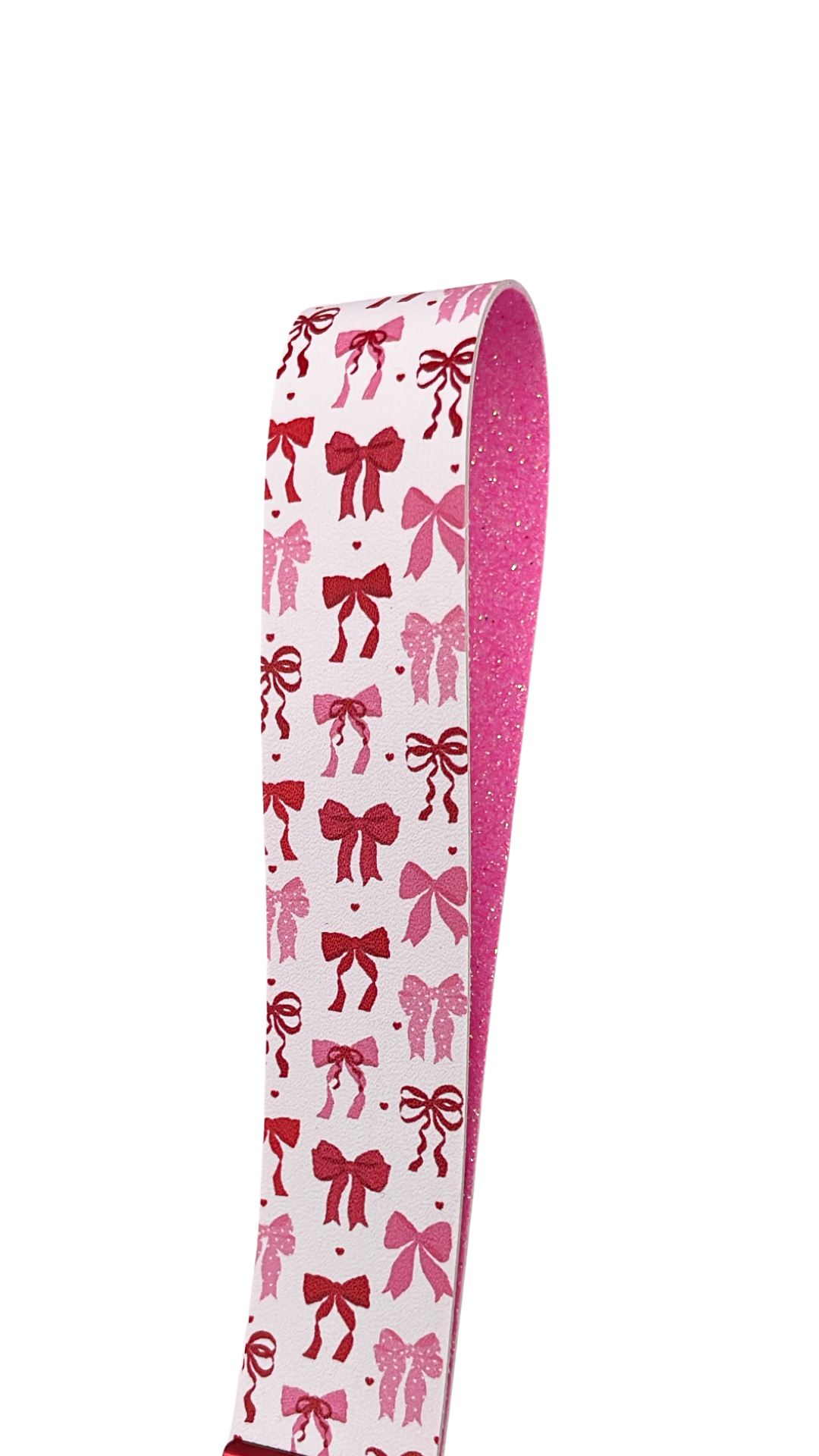Pink Velvet Keychain is the ultimate everyday carry accessory. With its faux leather wristlet with red and pink bows, it's perfect for any outfit. The keychain also features an emergency whistle, seatbelt cutter/window breaker, Chapstick and hand sanitizer holders (products provided), and an optional defense spray upgrade sold separately .