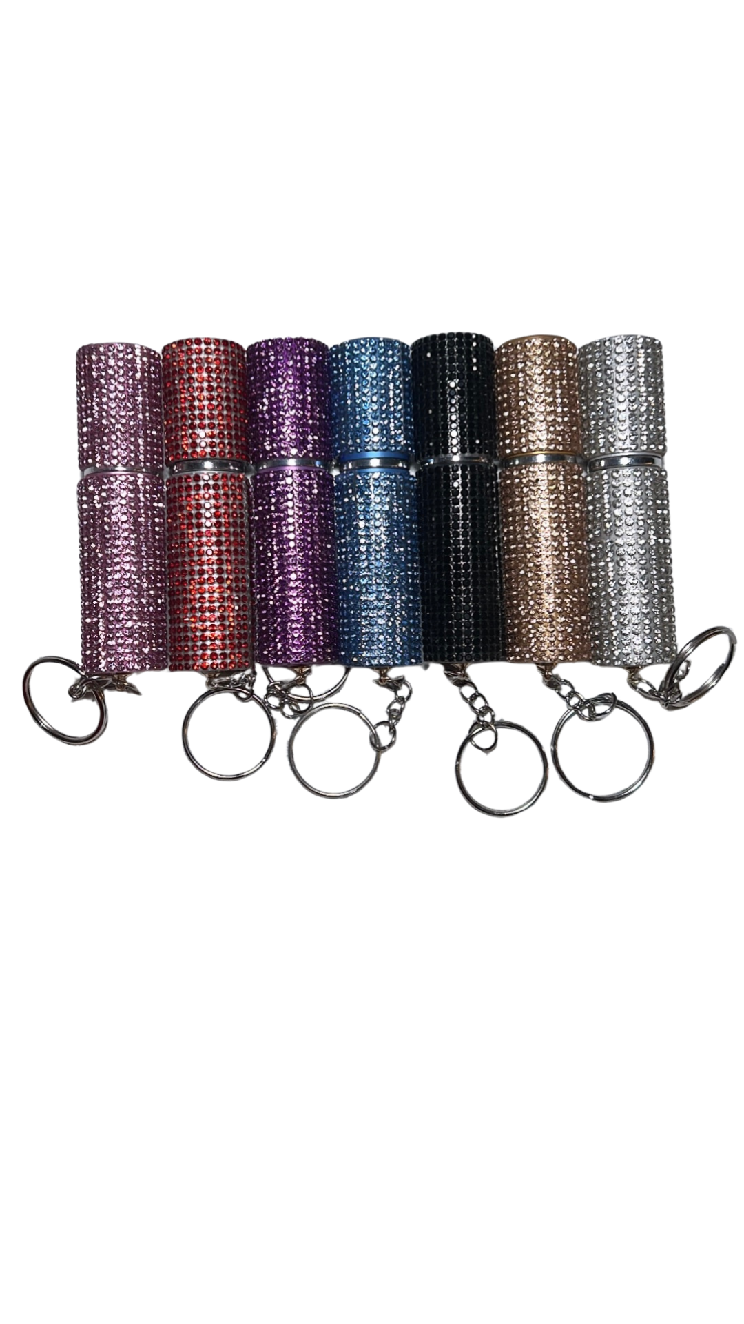 Stay smelling fresh with the Bling Travel Perfume Keychain. This compact and stylish keychain contains a 10mL bottle of your favorite fragrance, making it perfect for life on the go. It is light-weight and finished with a unique bling design, perfect for adding a touch of sparkle to your day.