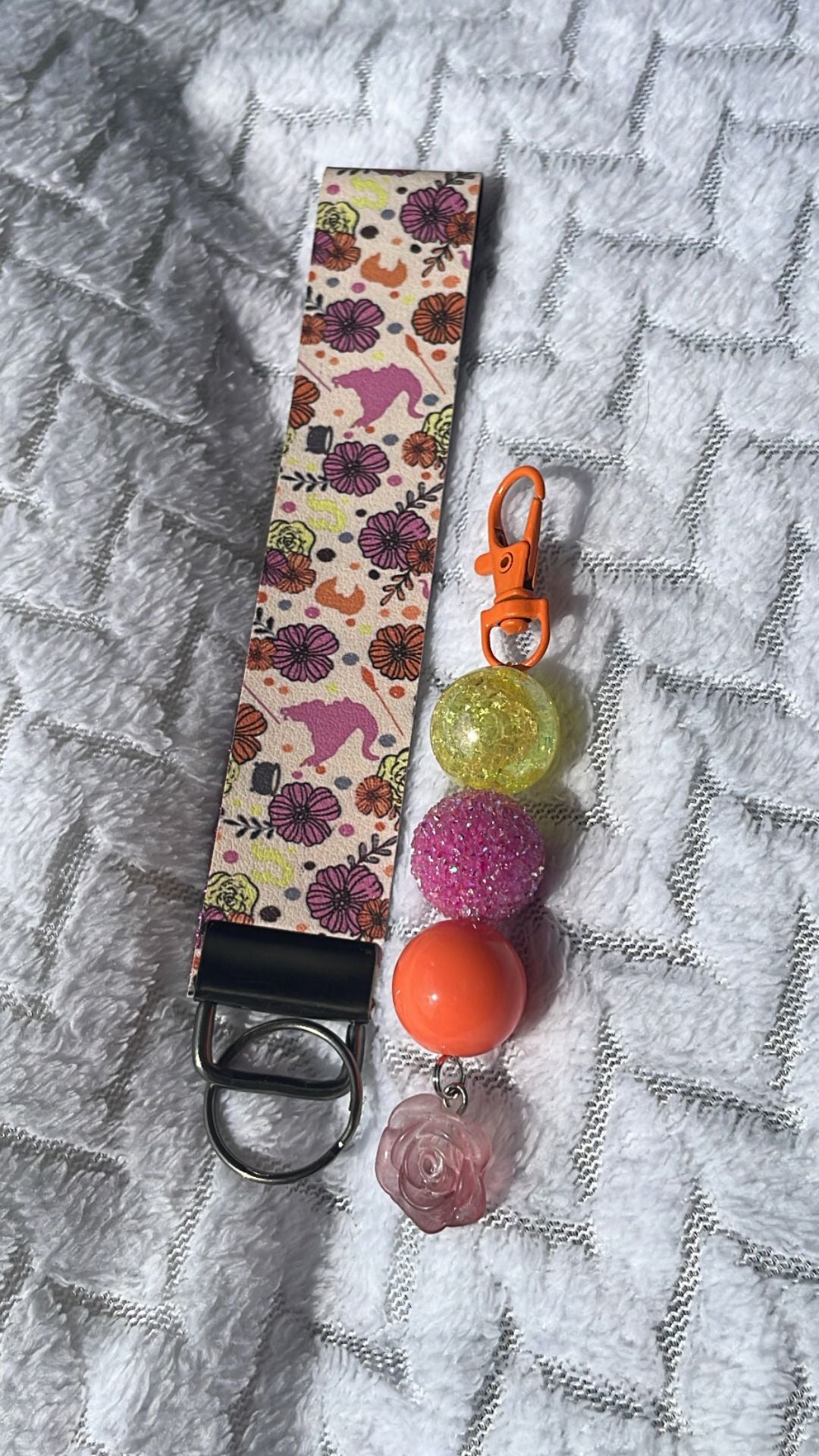 The Witches Garden Wristlet combines style and practicality with its handmade faux leather design. Compact yet spacious enough for essentials, it includes a playful bubble gum beaded charm that adds a touch of fun to your look. Perfect for keeping your belongings organized while complementing any outfit with effortless charm.